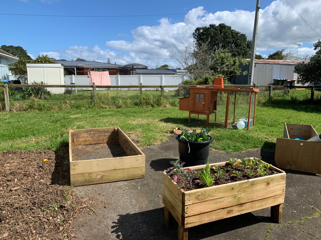 Violet said the seedlings had shot off at the start but then got to a point and never progressed. They had found an extra tub and trough on the side of the road, and emptied some of the bed into these, mixing in some bags of compost as they went. The stuff they have put in there is thriving. We talked about the main reason being the beds do better on grass with newspaper/cardboard underneath. They had chosen to put on the concrete which heats up and dries any soil out super fast. The seedlings roots stretched out into and through the soil and then hit the concrete where they had no nutrition and plateaued, only to die. Violet’s plants would have suffered more stress with the extra dry situation. I told her it was excellent observations and now she has emptied it she can leave the mulch to one side to rot down adding it a bit at a time to the tops of any beds she grows. She said hubby wanted to plant taro and I congratulated her on her progress and learning.