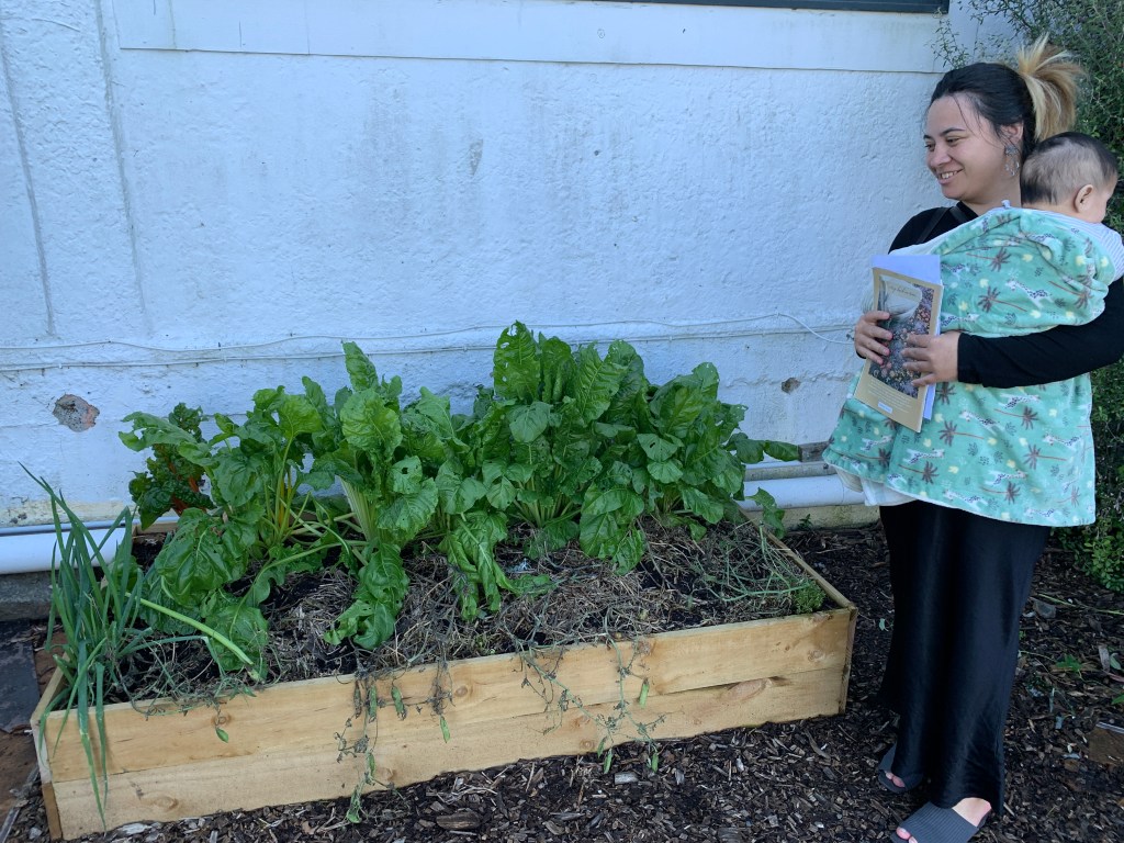 Nicola was my next stop for a second visit and I was keen to see her garden as she had memories of her Koro’s gardening and with her children at 9 and 12 wanted to do well. The garden had been ‘tidied’ by her Dad but she assured me they had eaten plenty out of there. It had been hammered by snails and white butterflies and we talked about alyssum and the job it does as well as simply screwing up newspapers to create a hiding place for snails and disposing of them in a couple of days. Looked like her Dad may have ‘tidied’ that away as well but I had some Alysum in the car and gave it to her to replant. We talked about where to go from here. Natural ways of helping with predators and seasonal planting. She was rapt in the planting guide, seeds, gloves and everyone seems to be grateful for the old NZGardener magazines I have been giving out. She’s googling and devouring any info she can find.